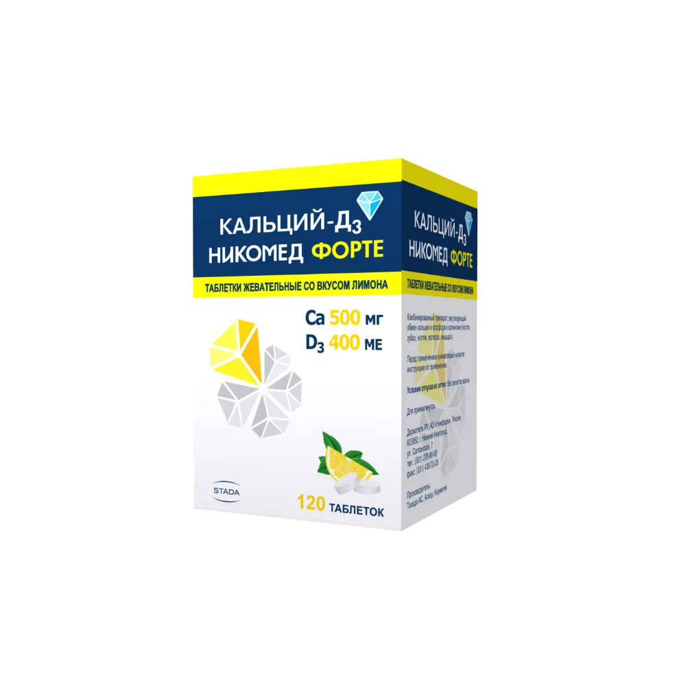 Кальций-Д3 Никомед форте таблетки жеват., лимон 500мг 400ме флакон №120